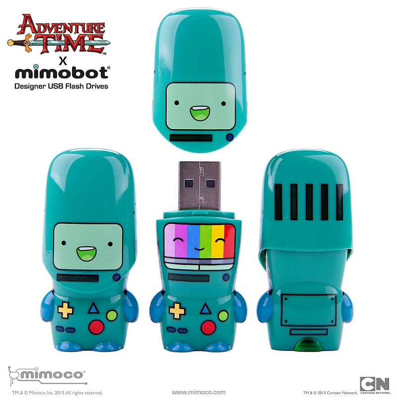 Additionally, all Adventure Time x MIMOBOT styles – which include fan-favorite characters Finn, Jake, and Princess Bubblegum (see our story HERE) – are now available in an algebraic, upgraded 128GB of data storage, and are offered in both USB2.0 and USB3.0 formats. BMO Rainbow MIMOBOT, as all others in the collection, comes preloaded with an exclusive desktop interface featuring Mimory® content like a full Adventure Time episode and our MimoDesk personalization suite, which includes BMO-themed wallpapers, icons, and avatars.