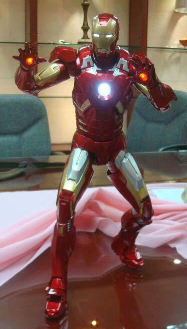 NECA shares with fans some new pre-production photos (they are still doing some minor tweaking) of their upcoming Marvel Avenger's Quarter Scale Iron Man. On shelves in the month of May to celebrate the release of Iron Man 3, this massive figure joins previously released Captain America (read our review HERE). Priced at around $94.99, the approximately 18 1/4" tall Iron Man is sculpted wearing his Mark VII armor and his head, chest and palms all individually light up. Includes two pairs of hands and the four aero-flaps on his back are articulated too.