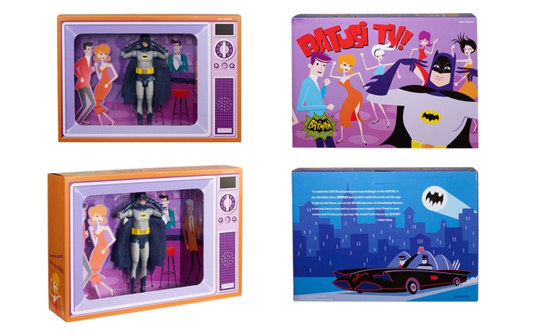 It’s the dance craze that swept the nation! For the first time ever, this Batusi Batman figure recreates the iconic dance from the BATMAN Classic TV series! Sculpted with authentic likeness and featuring a fabric cape, this figure has unique articulation and an internal mechanism that allows it to perform the Batusi. The diorama package features vintage-look art from Shag, and a sound feature plays music with a ‘60s vibe to perfectly capture the scene where Batman shows off his unique Batusi moves. The package is designed so the Batusi dance moves can be activated without removing the figure.