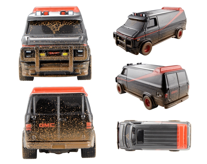 We love it when a plan comes together! The members of the A-Team were the top action adventure heroes of the ‘80s, and their van was one of the reasons why. This updated A-Team Custom GMC Panel Van features "mud" deco added to the wheels, body, and window, and arrives housed in an ammo box-style package. We pity the fool who doesn’t snag this cool ride! Features include Real Riders wheels and diecast body and chassis.