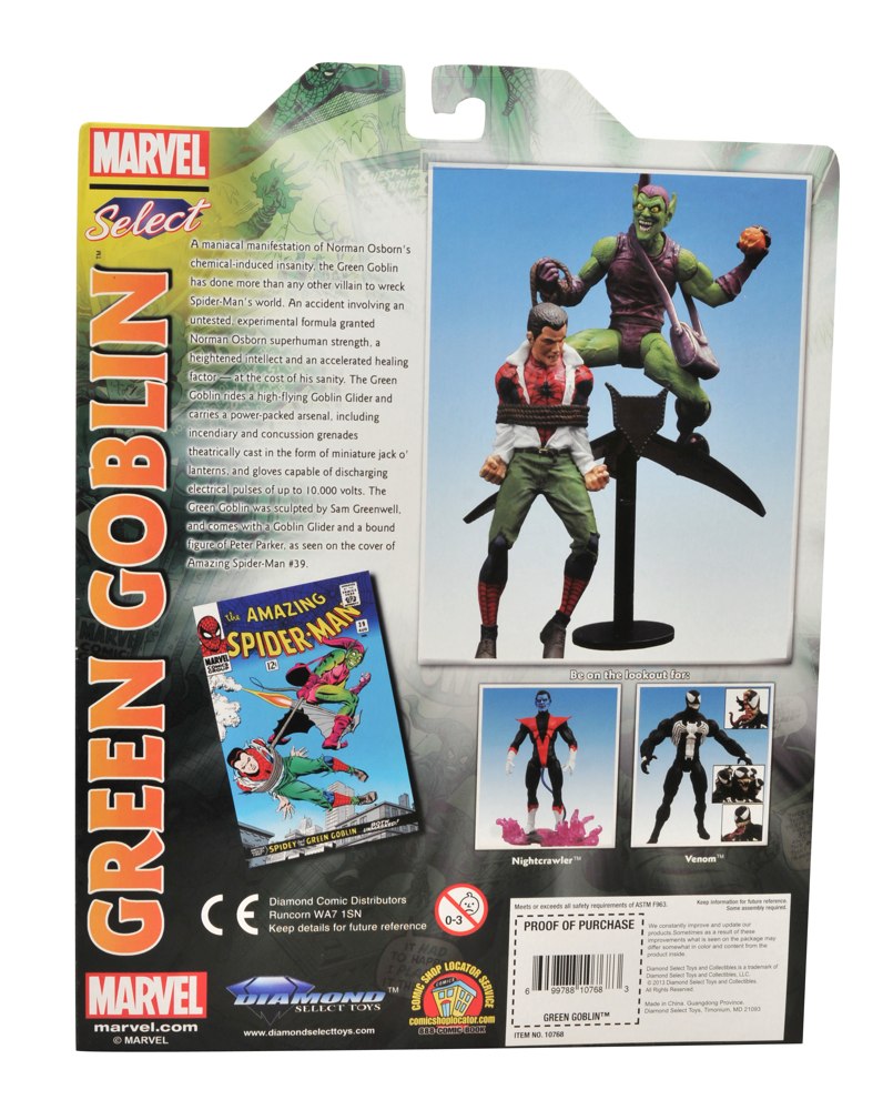 Diamond Select Toys announces that they are opening the vault and bringing back two Marvel Select classics: the original Ghost Rider, Johnny Blaze and Classic Green Goblin (with glider and Peter Parker pack-in figure). Blaze stands atop a base resembling the rumpus room from Hell, and Goblin re-creates the famous cover of Amazing Spider-Man #39 with Peter the Spider-Hostage.