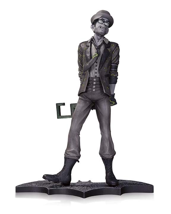 What’s black and white and green all over? This brand-new approximately 10" tall statue of the Dark Knight’s enigmatic rival, the Riddler, based on his appearance from the best-selling, critically acclaimed video game, Batman: Arkham City.