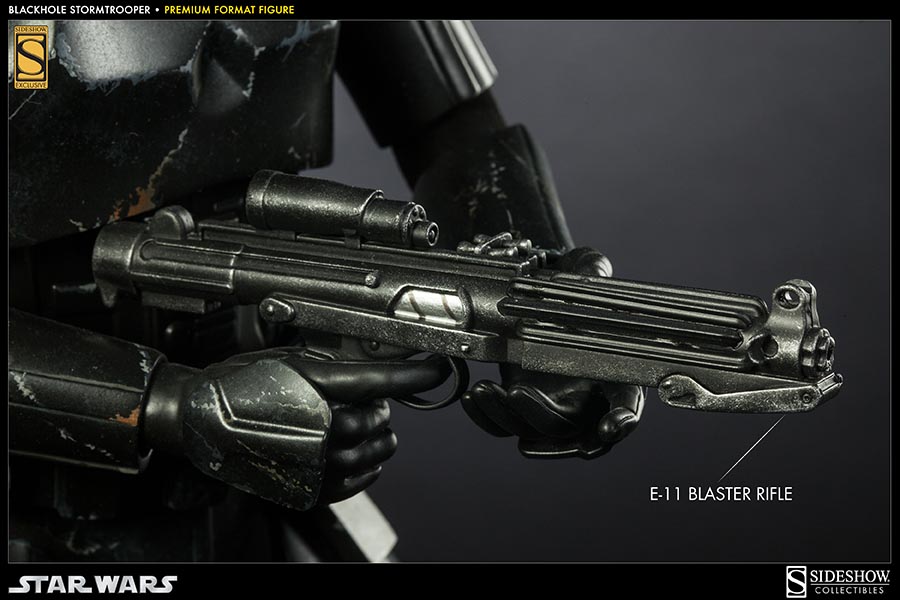 This Sideshow Exclusive features the unique all-black cloaking armor modification worn by Agent Blackhole’s elite squadron during the Galactic Civil War. Equipped with an E-11 Blaster Rifle, his head can be positioned to offer a wider field of view and optimal display range.
