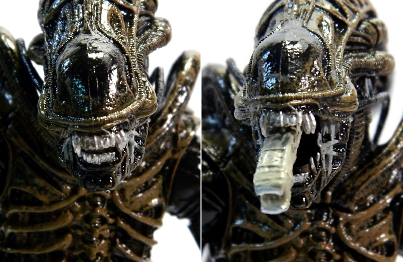 The cool thing about Aliens for me has always been their long phallic head and menacing jaws. NECA nails that look with a pair of teeth that firmly clamp together for a perfect "sneering" look. These teeth also open up wide revealing that iconic inner set of teeth. Where many Alien figures in the past have relied on a lunging inner jaw action gimmick, NECA eliminates all the unsightly buttons and levers yet still allows the inner teeth to be pulled out. You'll need a pair of tweezers (or really tiny fingers) to get them out, but I'd much rather do that than sacrifice such an amazing sculpt.