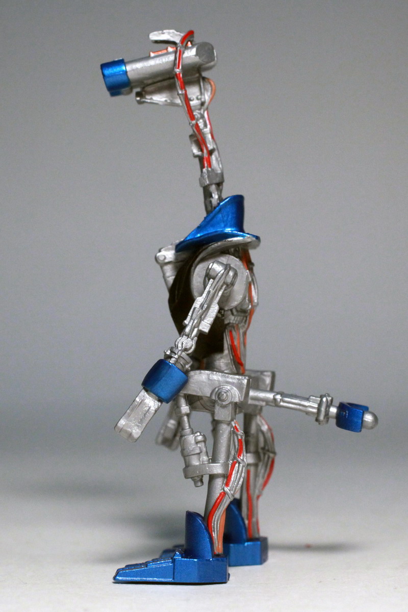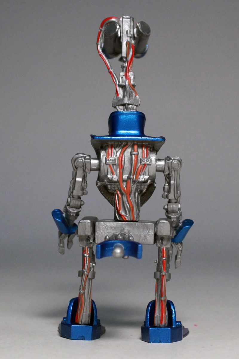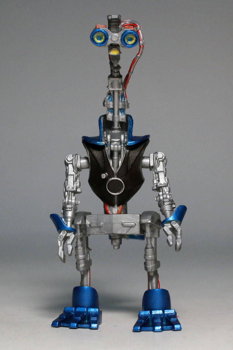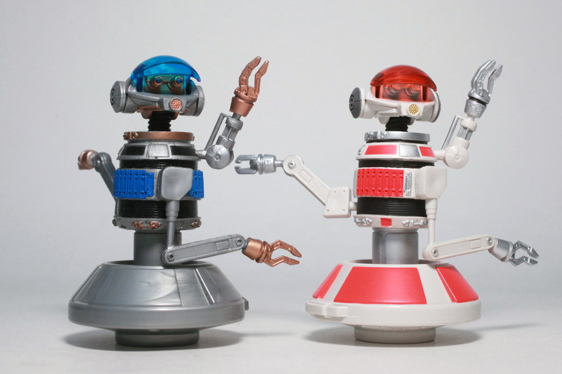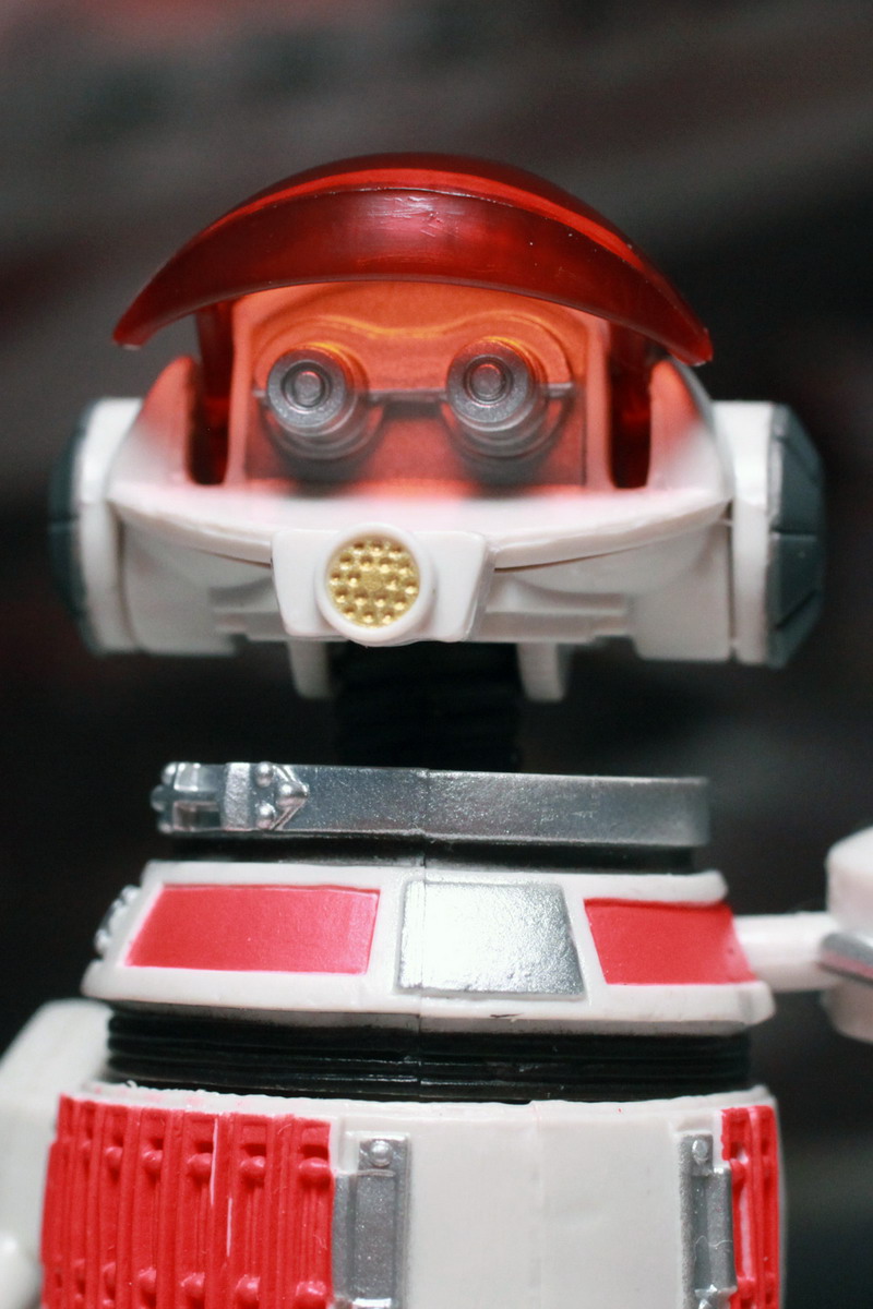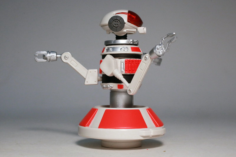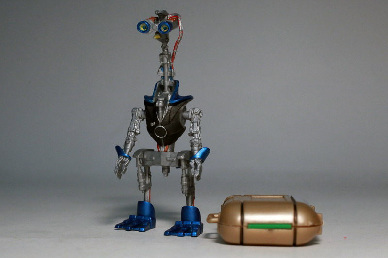 G2 Droid is a brand new sculpt and features eight points of articulation: neck, arms, legs, and heels. C-3PO has ten points of articulation which means he’s standard issue above the waist, and has thigh and knee joints like the previous figure. The RX Droid has eight points of articulation for his three arms, neck, visor, and the rest are in the rotating sections within his torso. A suitcase accessory that does open is also included.