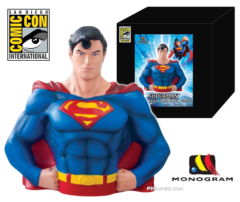 Featuring Comic-Con packaging, the Superman Resin Bust Bank will be available for purchase at San Diego Comic-Con, July 17-21, at Monogram's booth #3744.