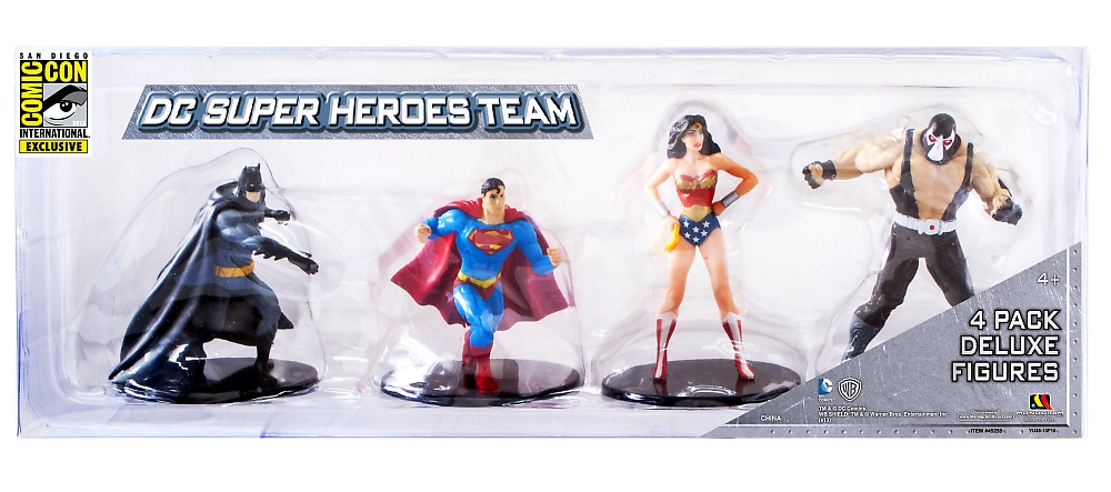 Monogram shares with collectors their ninth San Diego Comic-Con 2013 exclusive: a 4" DC Comics PVC Set. This detailed 4-piece collectible set includes: Superman, Bane, Wonder Woman and Batman wearing an exclusive black outfit.