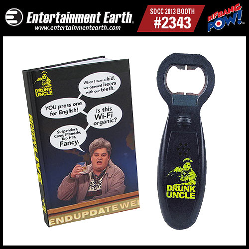 All Bif Bang Pow! Saturday Night Live Collection items will be available online at entertainmentearth.com, but the Convention Exclusive Drunk Uncle Journal with Talking Bottle Opener will be sold at the Entertainment Earth booth #2343 first.