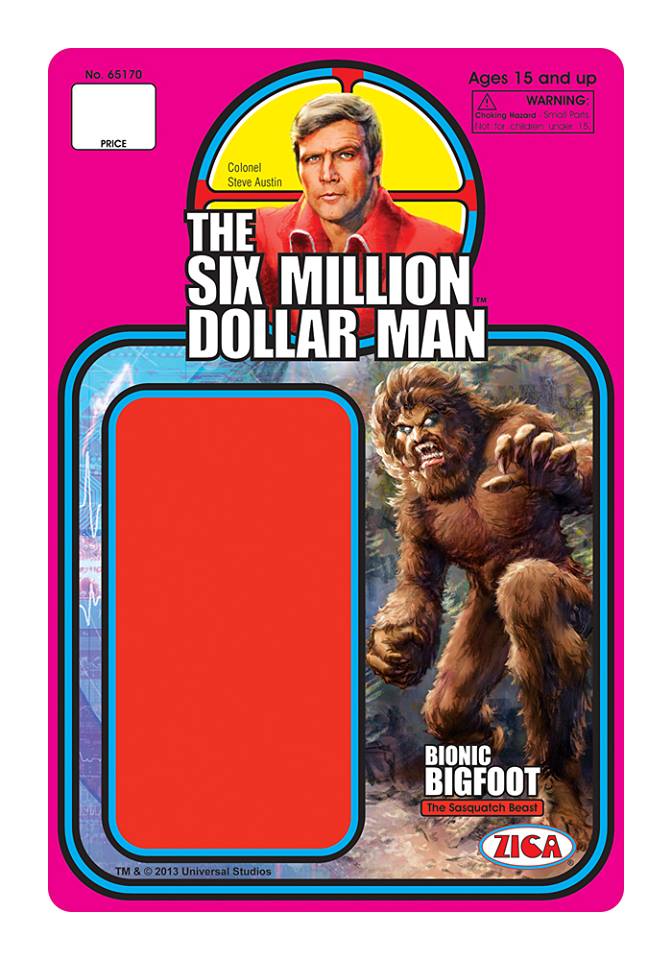 As reported HERE, ZICA Toys was preparing to release new Six Million Dollar Man retro style action figures. Sculpted in 3.75" scale, these harken back to the heyday of action figures, when the designs were simple and the fun factor was high. Pictured is the gorgeous retro card back art that the figures will come packaged on.
