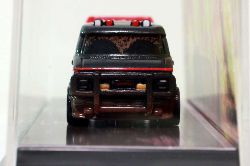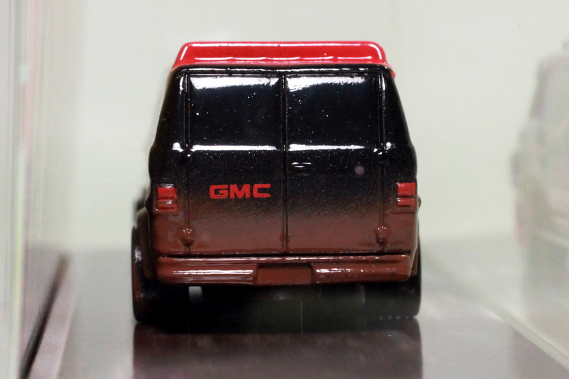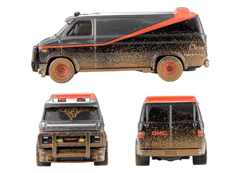 If you have browsed the Hot Wheels aisles frequently you may already own the standard A-Team Van Hot Wheels car (99cents) or perhaps the retro packaging Hot wheels with more accurate paint details ($5.99)… this year’s Comic-Con exclusive takes that same van and adds some dirt and mud details that really add some flavor to it. There’s even mud deco on the front windshield where it shows that at least the windshield wipers on the van work! (clarification: there are no working windshield wipers) The detail even goes to the tires, with them even getting BF Goodrich to sign off on the car. Very attractive.