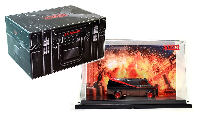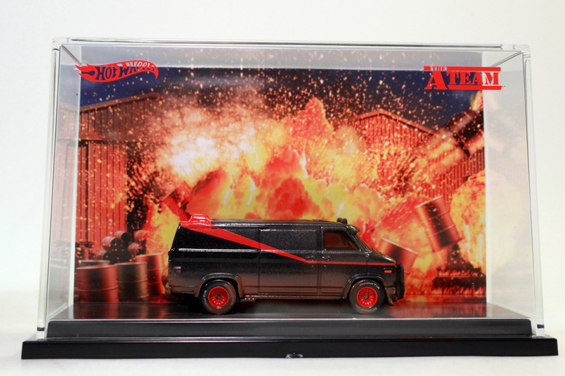 The van sits within a clear plastic box with a explosion backdrop. Definitely have to hand it over to them for style points. That’s one attractive display! And that’s not all... the box comes inside an A-Team ammo box with the name of each member of the A-Team on each side. This is one really attractive box but really seems excessive just a tad. There isn’t an easy way to display the ammo box and also show off the Hot Wheel case within. Each thing works independently of each other so keep that in mind if you aim to pick this up.