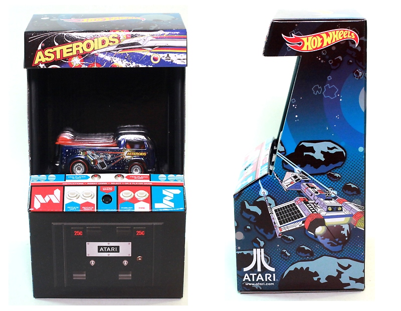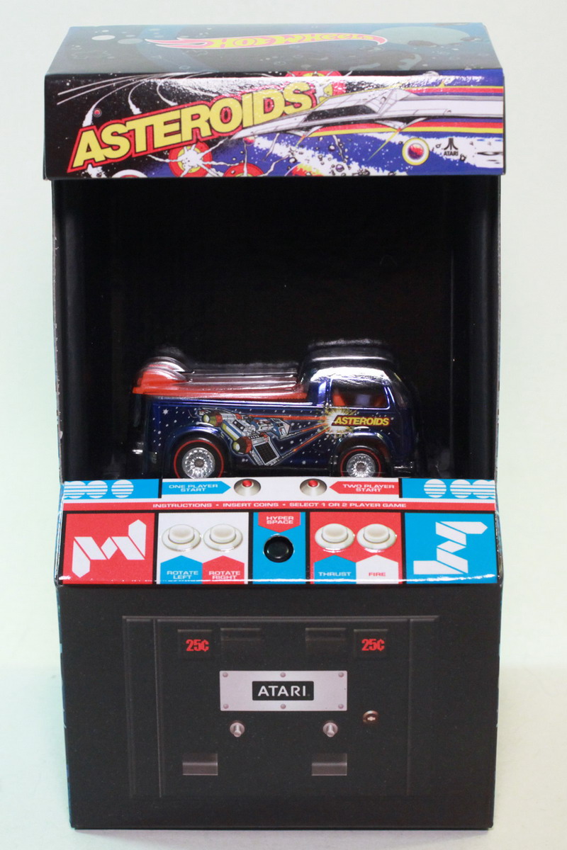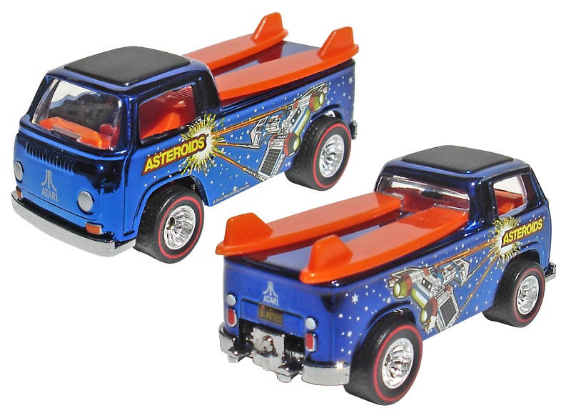 “There’s nothing better than the lights and sounds of an arcade game... except maybe a Hot Wheels car, of course. You’ll be transported back to the local video arcade with the Hot Wheels Atari Beach Bomb Pickup, finished in Red Line Club level hand polished Chrome Spectraflame and Asteroids deco! And just like the arcades of old, this awesome finish will soon be a thing of the past... this will be one of the last hand polished Chrome Spectraflame Hot Wheels car offered. Features diecast body and chassis, and Real Riders wheels.”