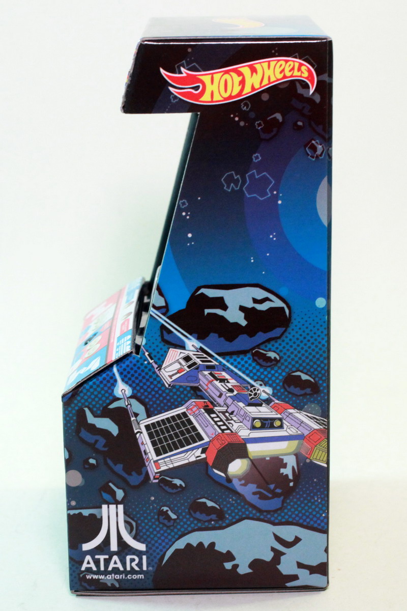 The $40 price tag is definitely for the deco of this car, which really is an attractive piece of work. But also there’s the Asteroids arcade game packaging with working lights and sounds with the push of a button. While I love die cast cars, I do have a love for arcade nostalgia even more and I’m a bit too afraid of destroying this packaging to pry the car out.