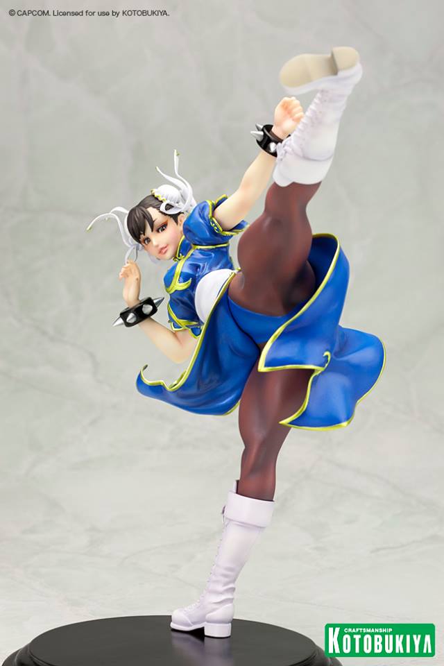 Rendered in 1/7 scale, the Chun-Li Bishoujo statue stands nearly 8 inches tall on her included display base. Based on an original illustration from world-renowned artist Shunya Yamashita, this is the inaugural release in a new series of highly collectable Street Fighter Bishoujo statues from Kotobukiya.