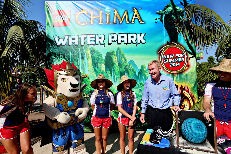 The LEGO Legends of Chima Water Park is based on the LEGO Group’s newest product Legends of Chima, where animal tribes battle in a mystical land for control of the precious energy source called “CHI”. Plunging a shovel into the sand to break ground in the new area, Ronchetti discovered a treasure box full of CHI and with the help of lifeguards and Laval, the warrior prince of the Lion tribe, he announced LEGO Legends of Chima Water Park is opening in summer 2014.