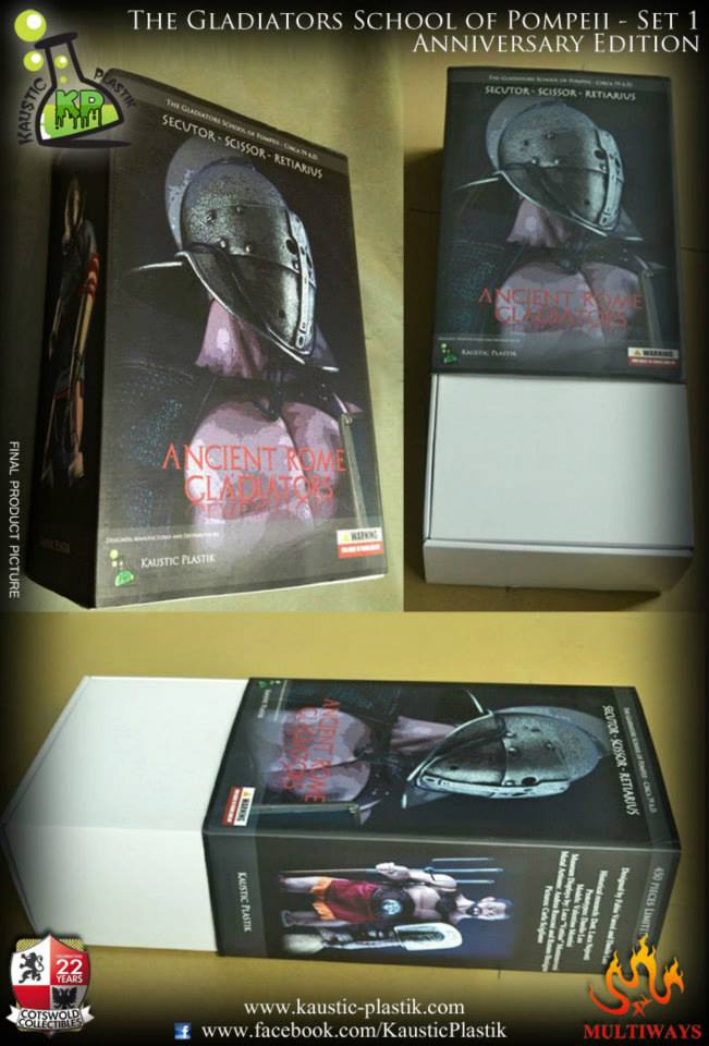 Kaustic Plastik shows off their all-new deluxe 1:6th scale figure packaging. Upcoming 2013 releases will come packed in a HARD cardboard closed window box with two layers of soft sponge foam to protect the figure and accessories. Figures featuring this new packaging - arriving in Europe and USA by the end of September - include Artorius - The Centurion, Gladiators School of Pompeii and Tiberius - The Legionary.