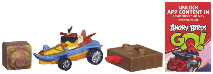 Collect all six ANGRY BIRDS GO! JENGA ROWDY RACERS characters to use throughout the ANGRY BIRDS GO! JENGA line. Each collectible character comes with its own kart, launcher and JENGA blocks to send the kart crashing! Players can also unlock ANGRY BIRDS GO! in-app content with a special code in each pack.