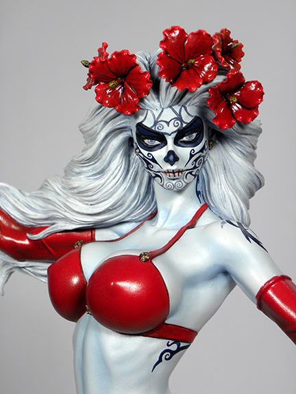 Brian Pulido's signature character - Lady Death - pays homage to the Mexican Day of the Dead celebrations in a new 12-inch tall cold-cast porcelain sculpture by Clayburn Moore for The CS Moore Studio.