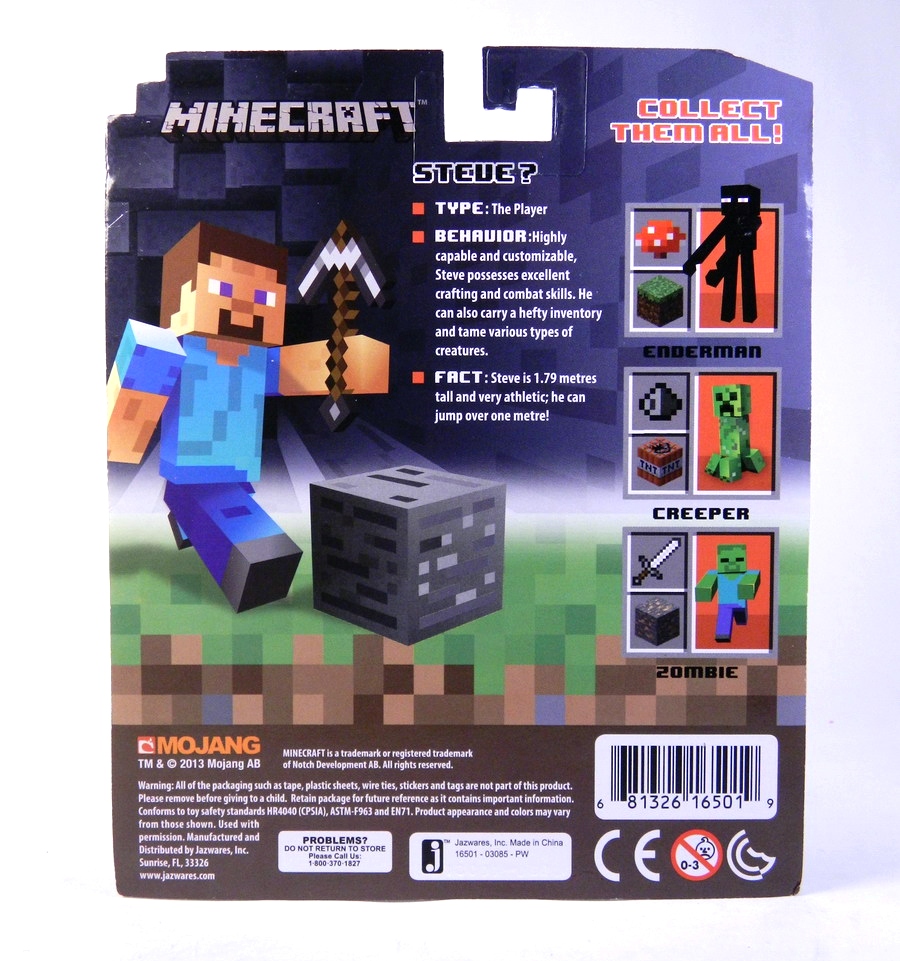 With near photorealistic graphics in games these days, it seems absurd that kids (and adults) would latch onto a title like Minecraft with such fandom. But such is the power of a game built on a solid foundation of fun; Mojang's sandbox indie creation providing endless hours of entertainment with its addictive three-pronged gameplay modes. As announced earlier this year (HERE), toy maker Jazwares had acquired the license to Minecraft to produce a variety of collectibles, including action figures, plush, and paper craft items. These items have just been released to retail.