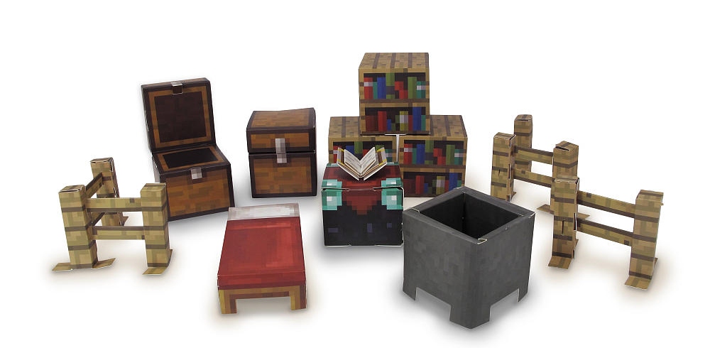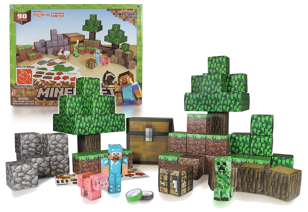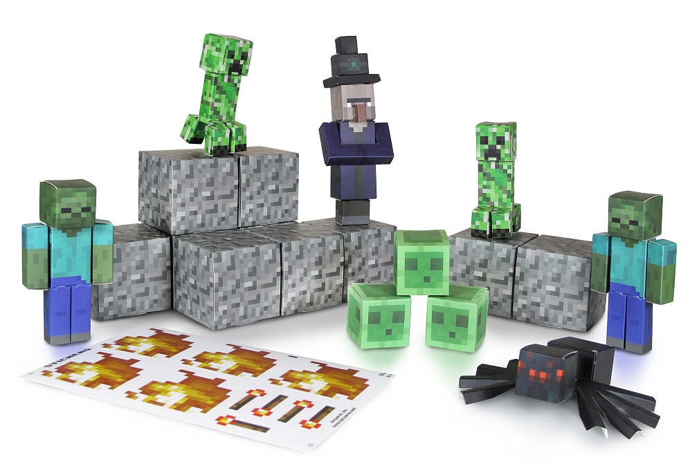 Last but not least, creative types will enjoy numerous Minecraft paper craft items. These range in complexity from 45 piece kits (Utility, Hostile Mobs and Animal Mobs themes - SRP $11.99), 100 pieces (Shelter, Minecart and Snow Biome - $17.99), to a massive 225 piece Overworld Deluxe Set ($24.99).