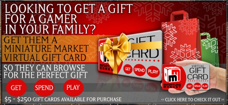 The holidays can be rough, especially trying to find the right gifts for all of your friends and family members. But don't worry, Miniature Market has got you covered with their Virtual Gift Cards! Available in increments of $5 to $250, the gift cards are sent via email immediately to your recipients so they can start shopping and get exactly what they want. Get yours now and get your holiday shopping done in one fell swoop!
