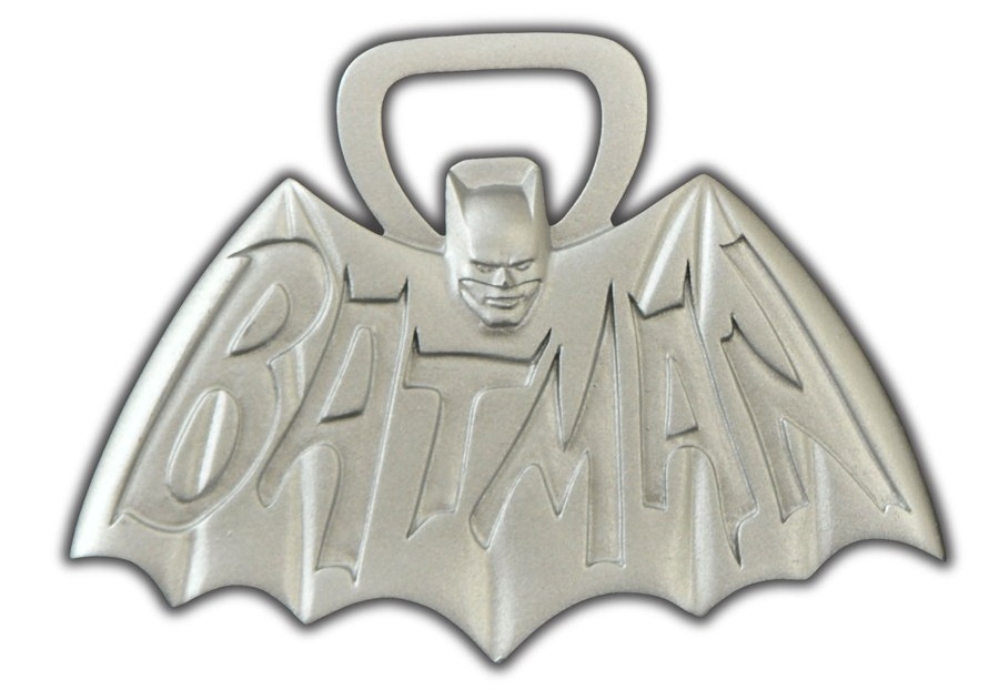 Nananananana BATMAN! After a long day of fighting crime and a long night of doing the Bat-tusi, Batman needs to cool off with a frosty beverage. And now you can party like a superhero with this solid metal bottle opener in the shape of the iconic Batman TV show logo. This 4-inch opener comes packaged in a collector case with a full-color wrap. Designed by Barry Bradfield. (SRP: $18.00, item #FEB142059)