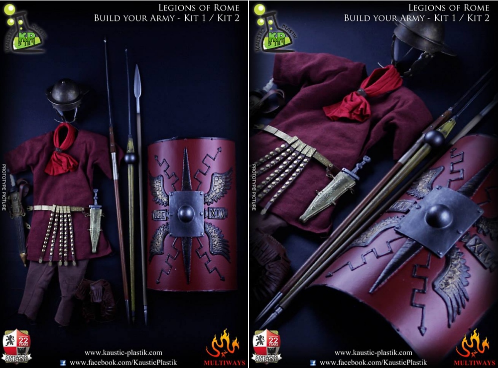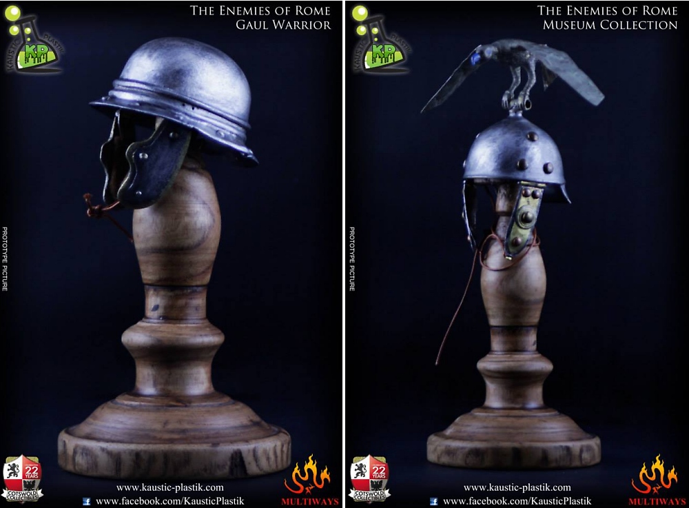 1:6th scale figure creator Kaustic Plastik shares with collectors a preview of some of their 2014 offerings. These include an all-new body type, the Generation K MUscle Body, a new project called XXL starring some spectacular looking head sculpts (Arnold anyone?), a variety of real metal ancient Roman helmets, including Praetorian Guard and a new "Enemies of Rome" series, as well as new Legionsof Rome "Build Your Own Army" Kits.