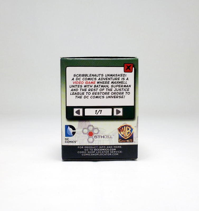 KK - Or maybe even in this one...? [It has since been revealed that the Green Lantern Maxwell is the hidden Wave 1 chase.] We had a lot of fun developing many, many characters. Back at San Diego we maybe made the decision a week or two before the show that we were going to be going ahead with this line and we wanted to get them out there to see the reaction but we had no info on how we were going to package them, or anything. We didn’t know what the character assortment would be so we just threw some of the guys out there and did it. One of the important things you noticed is with that Maxwell; we definitely wanted to support Maxwell since he’s the key character in Scribblenauts but this is still a DC Comics Adventure so you’ll only ever see a Maxwell in a costume of a DC character. And, they have so many designs of Maxwell in costumes that we couldn’t even decide what to pick from; I’d say that the Maxwell that appears in the second wave is my most favorite thing in the world.