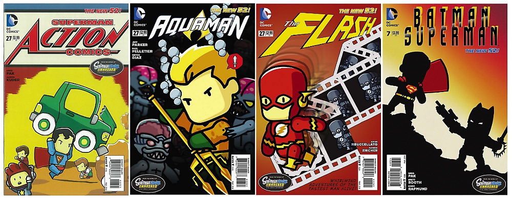 You can pick up Scribblenauts Unmasked: A DC Comics Adventure figures at your local comic store or GameStop now, and at $5 a pop they’re easy to collect and share with younger fans too. In addition, Scribblenauts are coming to actual DC Comics with their own Scribblenauts Unmasked: A Crisis of Imagination comic as well as unique Scribblenauts variant covers on current books this month. And finally, thanks to some early solicitations we know that Series 2 should be coming in March and will include Blue Beetle (Jaime Reyes), Batman, Cyborg, Superman Blue, Flash (Barry Allen), Green Lantern Sinestro, Ocean Warrior Aquaman, Bane, Gold Batman, and two chase figures! More coverage on those as we get it.