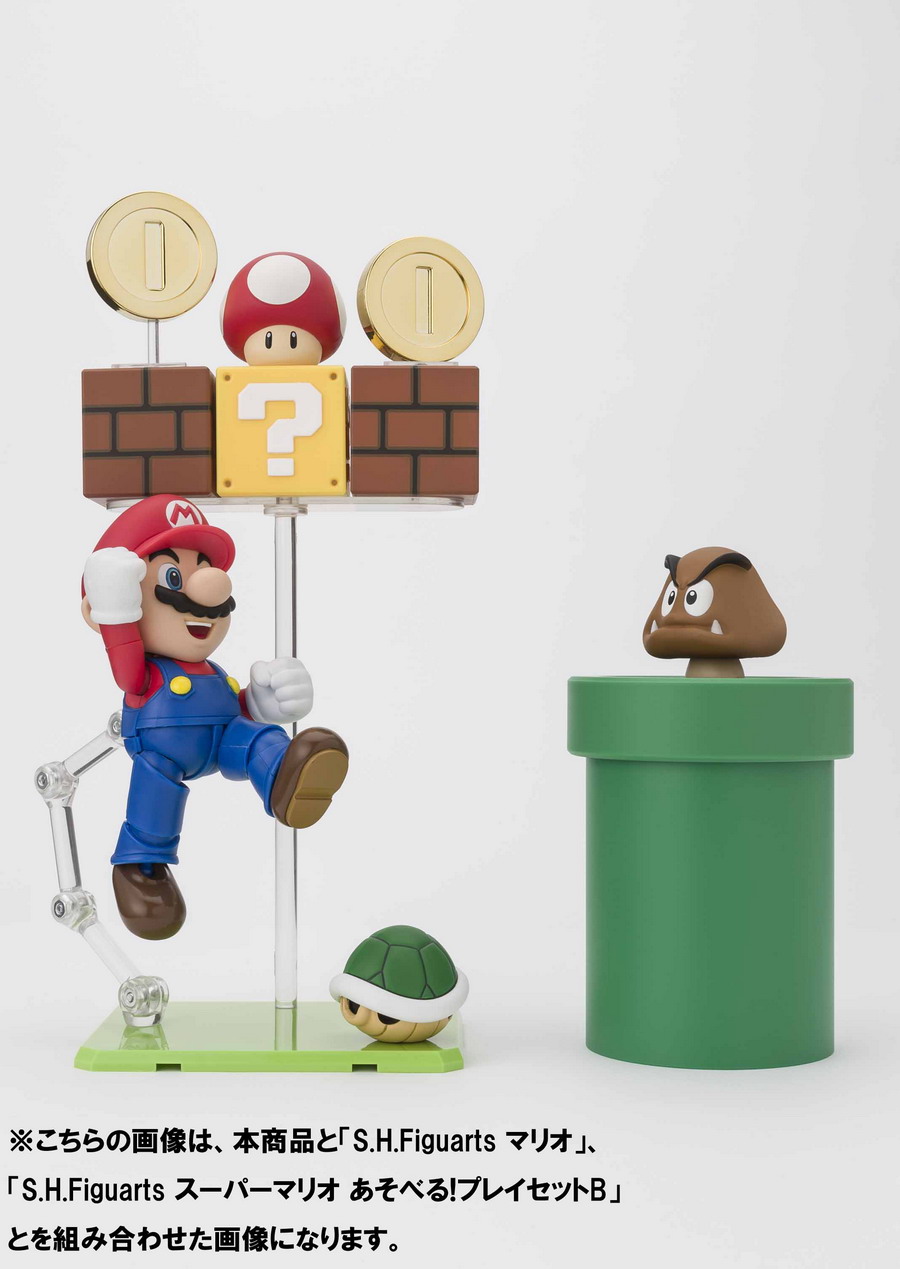 S.H.Figuarts Diorama Play Sets allow you to take full advantage of S.H.Figuarts Mario and feature a variety of option parts to enhance the action figure posing experience. Diorama Play Set B features two pipe parts, pipe adjustment parts, Goomba, coin, coin stands (x2), green shell, interchangeable hand parts for holding green shell, and green shell connecting parts. MSRP $19.99