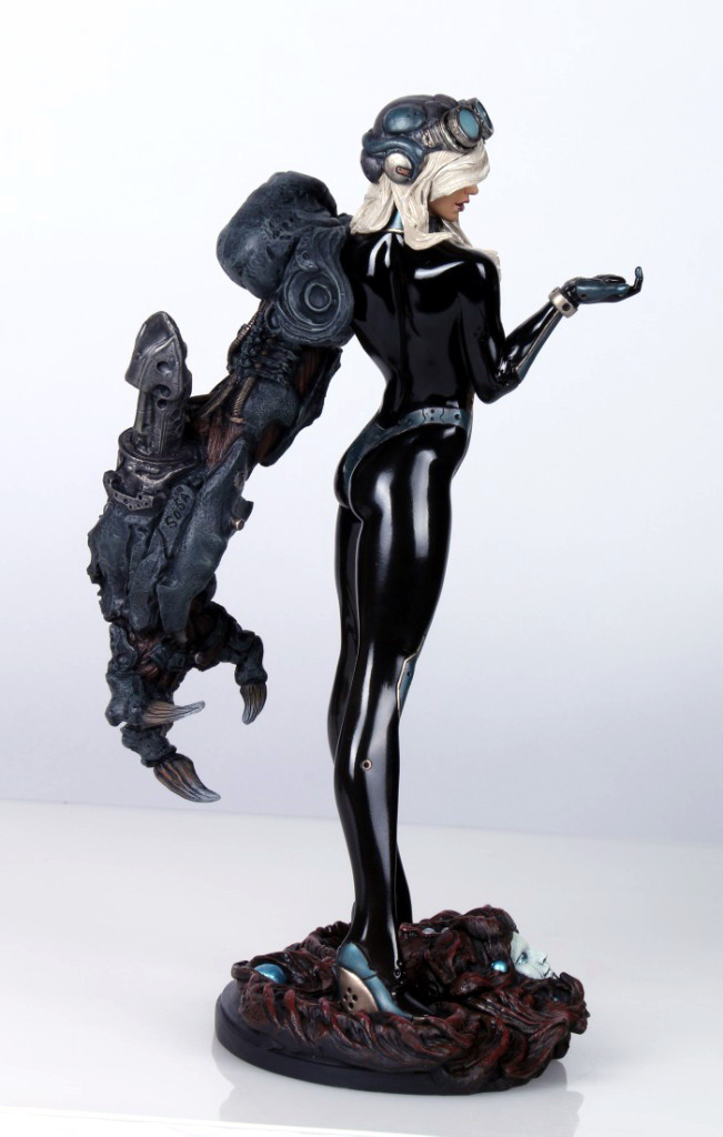 Yamato USA announces that they have reworked the paint applications on their upcoming Fantasy Figure Gallery Sculptor's Original: SPACE HOST GIRL by Erick Sosa. Cast in resin, this 1:6th scale (approx. 14" with base) statue combines an exotic sci-fi mix of woman, monster and technology. You can see the improvements in the photos above, the new Space Host Girl featuring a nice glossy black and metallic blue outfit, along with the addition of stamped white insignia (U.S. 01) on her left leg and breast.