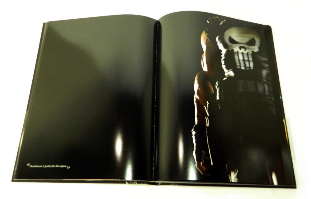 The rest of Capturing Archetypes consists of gorgeous photography of Sideshow's many masterpieces. Each collectible is given a two-page spread for full impact, many featuring a powerful character quote. Represented are a wide variety of Sideshow licenses, from their success with Marvel, DC, Star Wars, G.I. Joe and Lord of the Rings, to wonderfully gruesome in-house properties like The Dead. Fine polystone busts and statues make up the bulk of the collectibles highlighted, although several one sixth scale action figures also join in the fun. Some of my favorite photos are those that set the character collectible in an environment, such as Jack the Ripper emerging from a shroud of sinister swirling smoke or Vader's choking interrogation onboard the Rebel blockade runner. I also appreciate how many of the photographs opt for a close up as opposed to revealing the entire character. Take the Punisher, for example, the tight shot of the vigilante's skull logo more than enough to hammer home the message.