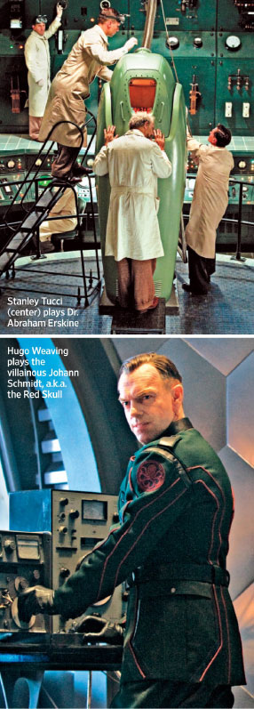 The meatiest issue facing Captain America is the politics. Marvel began the project keenly aware that a movie about a star-spangled super soldier named Captain America could be a tough sell to a politically divided nation and international audiences with a dim view of America’s current role in world affairs. Indeed, Feige indicates that Captain America: The First Avenger may be released in some foreign territories as just The First Avenger. Still, says Johnston, “I never wanted to make this movie into something of a flag-waver. We were very careful about that when we were developing the screenplay.” Marvel initially wanted a movie that toggled between past and present, but ultimately opted to set the story exclusively during WWII because the back-and-forth approach didn’t work for an origin story— and because WWII has exactly zero moral ambiguity. Johnston says he also wanted a movie “about international cooperation.” To that end, the film makes Captain America the leader of a team of elite soldiers from various countries, known in the comic books as the Howling Commandos. “It’s not about running from [political interpretations] or being afraid of saying anything, but just staying true to what the story has always been,” says Broussard. “I welcome whatever kind of healthy debate comes from it.”