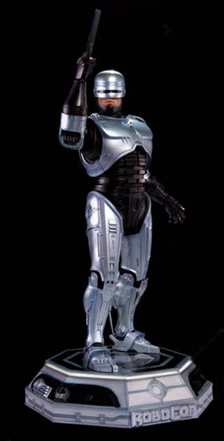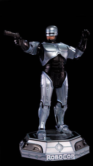Pop Culture Shock (popcultureshocktoys.com) announces that pre-orders for their ROBOCOP statue will begin May 12th at 3pm Pacific Time. The 22-inch tall statue, based on the future crimefighter as seen in the classic 1987 film, will be available as both a regular edition (pictured above left - $425) and as a PCP Exclusive (above right - $449) featuring TWO sets of interchangeable arms and a light-up LED display base. The exclusive will be strictly limited to 350 pieces. Both versions are slated to begin shipping second quarter 2015.
