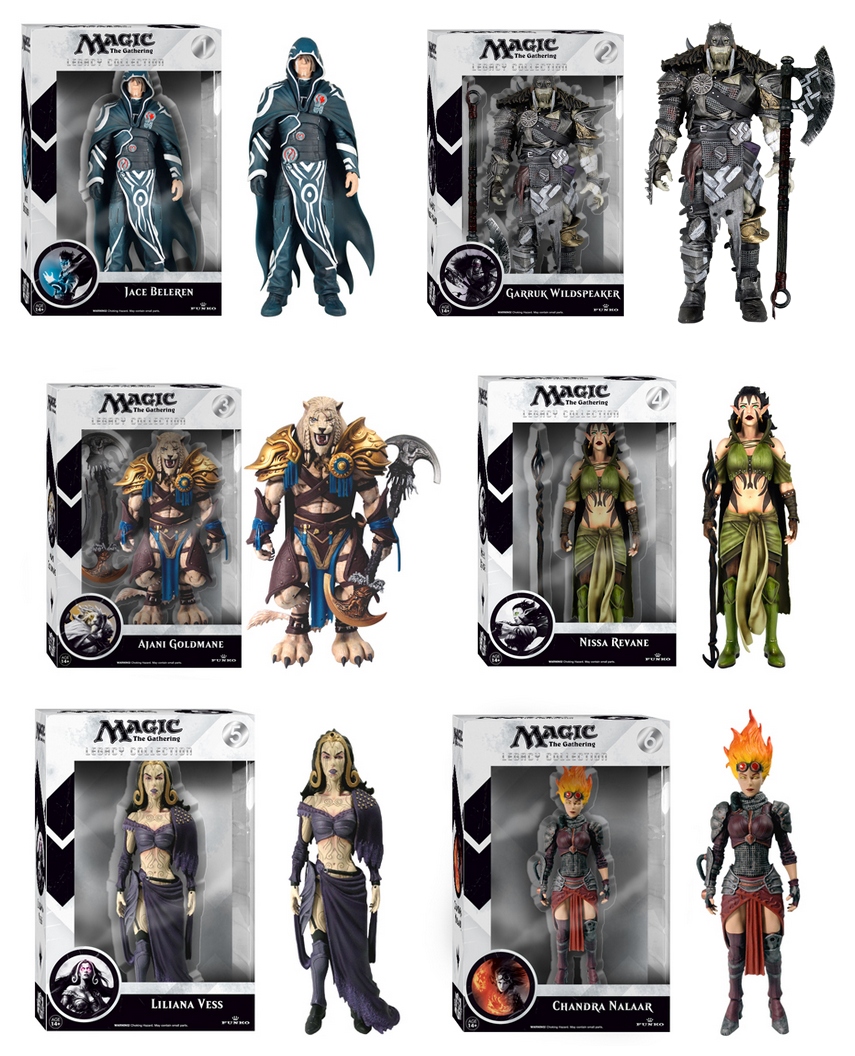 Due out in September, Funko's Magic: The Gathering Legacy Collection will feature Jace Beleren, Garruk Wildspeaker, Ajani Goldmane, Nissa Revane, Liliana Vess and Chandra Nalaar.In Magic: The Gathering, a Planeswalker is a powerful mage who is able to travel across the planes of existence. There are infinite worlds across the Multiverse, and Planeswalkers are unique in their ability to move from one world to the next, expanding their knowledge and power through the experiences they collect there.