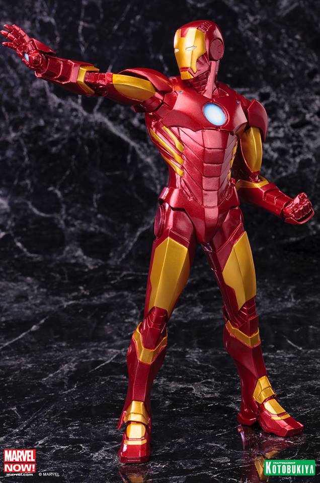 Where the standard version is bold in black and gold (see HERE), this variant edition takes its color scheme from the classic armors in bright red and gold! Sculpted by the same master artist who did the rest of this Avengers series, Junnosuke Abe (RESTORE), Iron Man stands just under 8 ½ inches tall (in the ARTFX+ 1/10th scale) on his included magnetic display base. The Iron Man (Red Color Variant) ARTFX+ Statue will be available in December 2014.