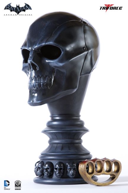 TriForce has opened pre-orders on their Batman: Arkham Origins - Black Mask Arsenal Full Scale Replica. Unveiled at San Diego Comic-Con (HERE), Roman Sionis' mask is crafted and cast in polystone and includes his signature knuckle dusters. Limited Edition of 500 pieces worldwide, the Black Mask Arsenal Full Scale Replica is priced at $400 with a payment plan available. It is available through projecttriforce.com with an estimated ship date in the 4th Quarter of 2014.