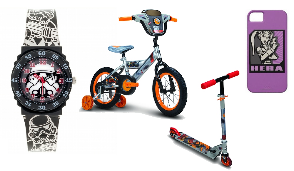 • Star Wars Rebels Scooter by Huffy (MSRP: $39.99-89.99): Race to your next adventure in a Star Wars Rebels branded scooter! The orange aluminum scooter deck is fully wrapped with grip tape and printed with a scene from the new animated series!