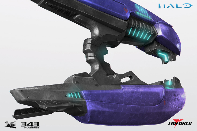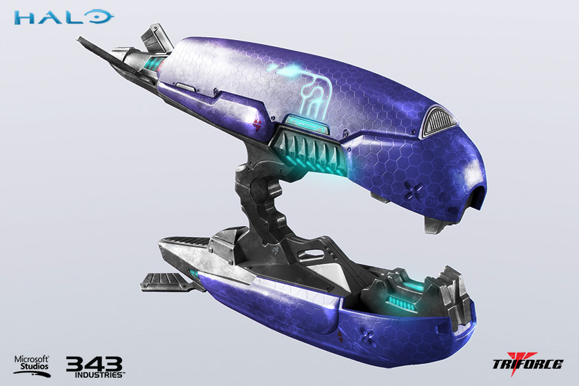 As announced at New York Comic Con (see our story HERE), TriForce had acquired the license to produce replica weapons, statues and vehicles from Halo. The first item to be offered is a full-scale replica of the Covenant Plasma Rifle. Based on its appearance in Halo 2, the 1:1 scale Halo 2: Anniversary Edition- Plasma Rifle Full Scale Replica measures 24.5" in length, weighs in at 15 pounds, and features working LED effects. It is available for pre-order now through projecttriforce.com priced at $600 and limited to only 500 pieces worldwide.