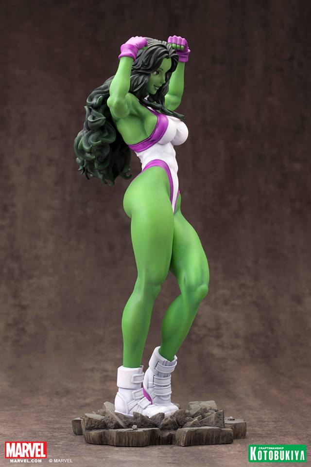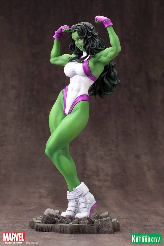 Kotobukiya, in their continuing effort to innovate and improve the products they offer, has reworked the paint application on She-Hulk’s portrait. More updated photos can be found in our gallery below.
