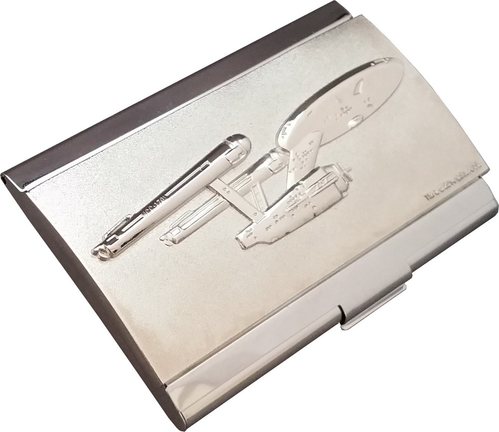 STAR TREK NCC-1701 BUSINESS CARD CASE Boldly go where no one has gone before with this incredible Star Trek business card case. Made from high quality metal and embossed with the Enterprise NCC-1701, your clients and business contacts will know that you are ready to beam up to any challenge!