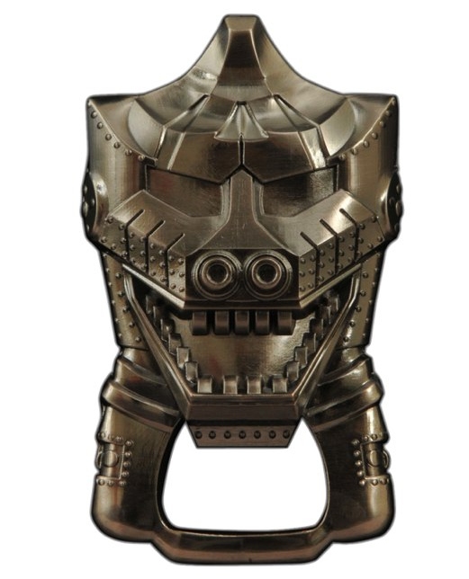 Constructed of Space Titanium, Mechagodzilla battled the real Godzilla to a standstill on more than one occasion, and was only defeated when his head was torn completely from his body. Now his head lives on as the newest Godzilla bottle opener from DST! Made of solid metal, this 4" tall rendering of Mechagodzilla's noggin can hang on your refrigerator or slip into your pocket, ready at a moment's notice to open a bottle, or possibly destroy Tokyo. Comes packaged in a collector case with a full-color slipcover. (Item #JUN142091, SRP: $18.00)