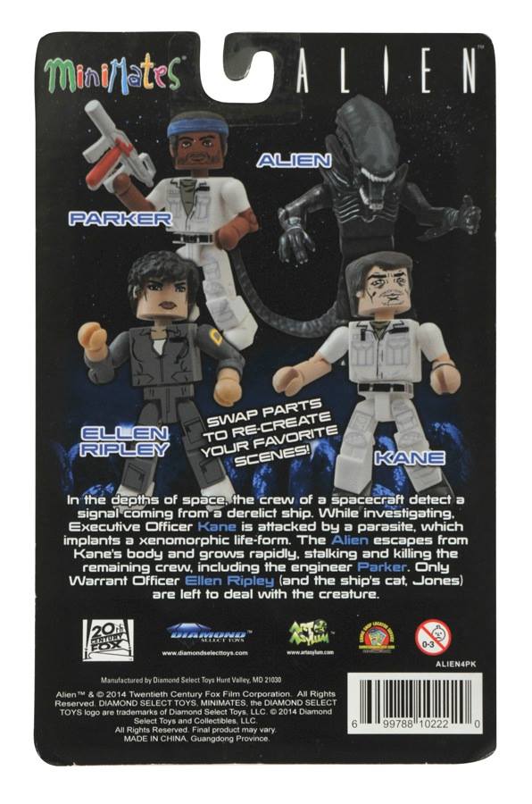 Diamond Select Toys has released new photography of their upcoming Alien 35th Anniversary Minimates Box Set. In stores January 14th, the set includes Ripley, Kane, Parker and the "Big Chap" hiself, the original Xenomorph. Each fully poseable Minimate stands approximately 2 inches tall and features a variety of interchangeable parts and accessories, including a facehugger alien and the ship's cat, Jonesy!