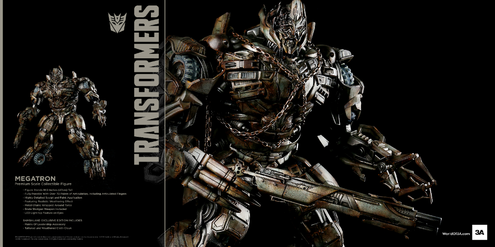 Following Bumblebee (see HERE), ThreeA Toys announces that they will be releasing the Decepticon villain Megatron. This 18.5-inch Premium Scale Transformers Collectible Figure will be available for pre-order through bambalandstore.com starting today, January 29th at 8:00PM EST. Megatron will be priced at $430.
