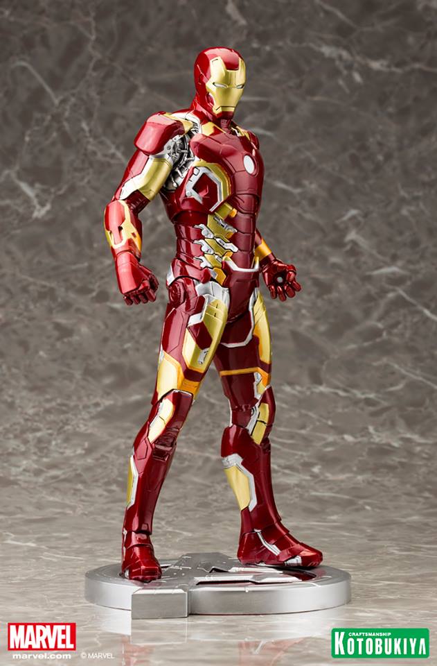 Kotobukiya last brought you full size ARTFX Iron Man armors from Iron Man 3, and now they're expanding the collection with one of the stars of the upcoming film Avengers: Age of Ultron. In that film Robert Downey Jr. reprises his born-to-play role of Tony Stark while cutting edge special effects bring his armored forms to life like never before. If you’ve been keeping up we last saw the Mark 42 armor in the last Iron Man film, and so naturally the next suit in the Armored Avenger’s arsenal is the Iron Man Mark 43.