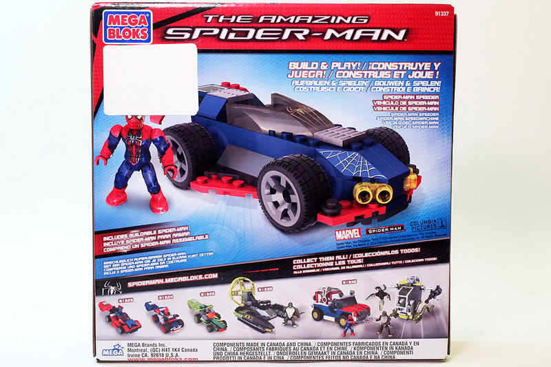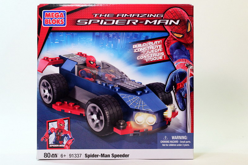 In addition to Hasbro’s line-up of action figures to support Sony’s THE AMAZING SPIDER-MAN film release, Mega Bloks has stepped in with their very own line of building sets and toys. There’s a wider variety of building sets that can be found in your stores now, but today we’ll take a look at one of the items in their Motor Vehicles Assortment for you kiddies ages six and up, The Spider-Man Speeder.