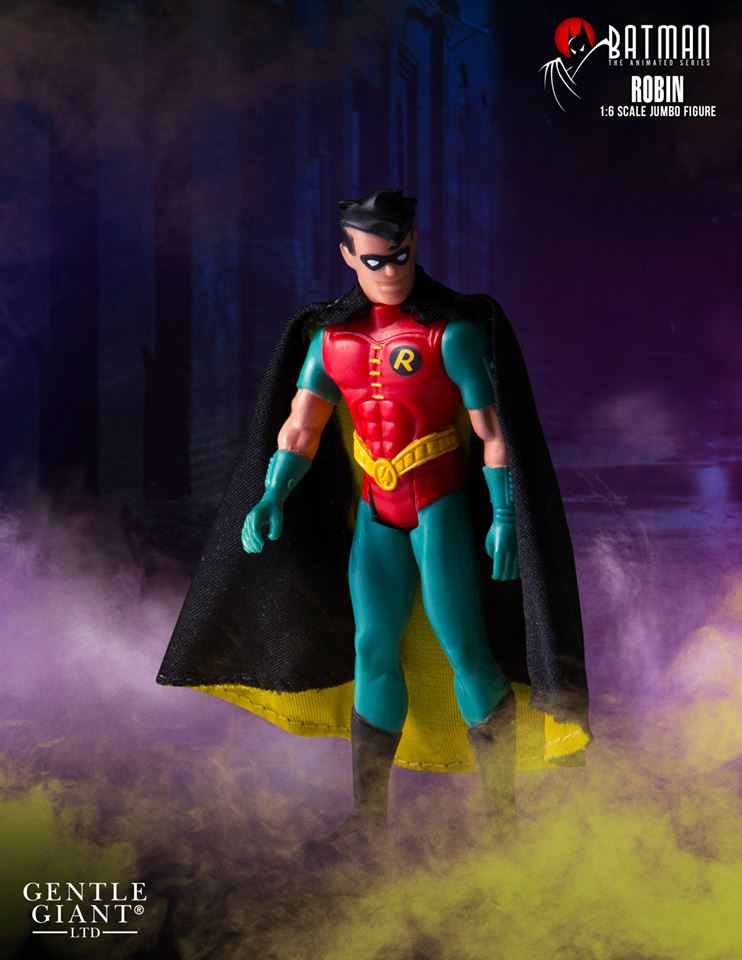 Gentle Giant introduced two new DC Comics "Jumbo" figures. Priced at $90 each and arriving 2nd quarter 2016, these include a Super Powers Flash and Batman Animated Robin. Both 12 inch Jumbo figures are based on digital scans of the original Kenner 5” action figures, will feature retro art packaging, and come in a protective re-sealable blister pack.