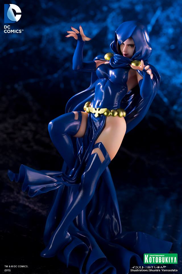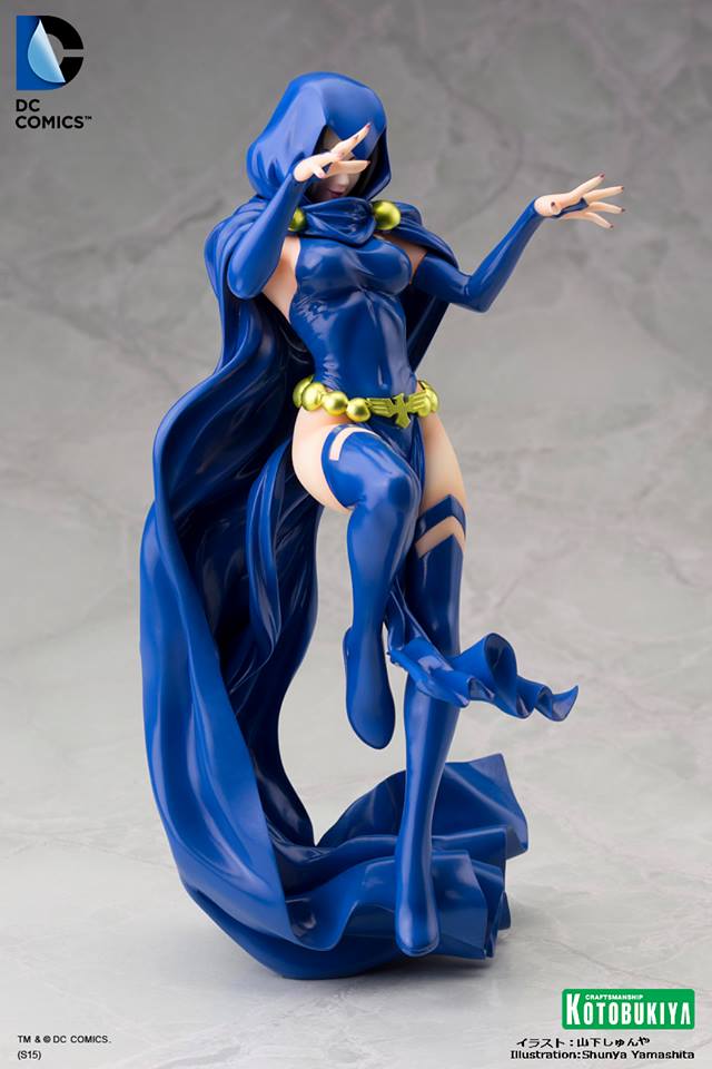 Demons and evil doers beware! Kotobukiya presents the next entry in their lineup of Bishoujo statues based on the superheroines and villains of DC Comics, the mystical Raven. The half-demon daughter of Trigon uses her formidable magical powers alongside the Teen Titans, always careful not to unleash “hell” by keeping her emotions in check. Raven finally steps out of the shadows in her debut in the Bishoujo series with traditional Japanese “pretty girl” styling based on a new character interpretation by Shunya Yamashita.