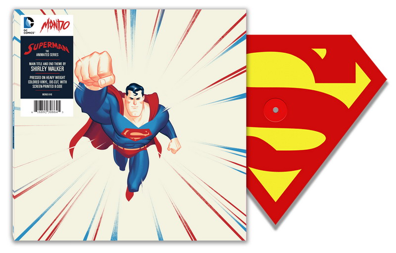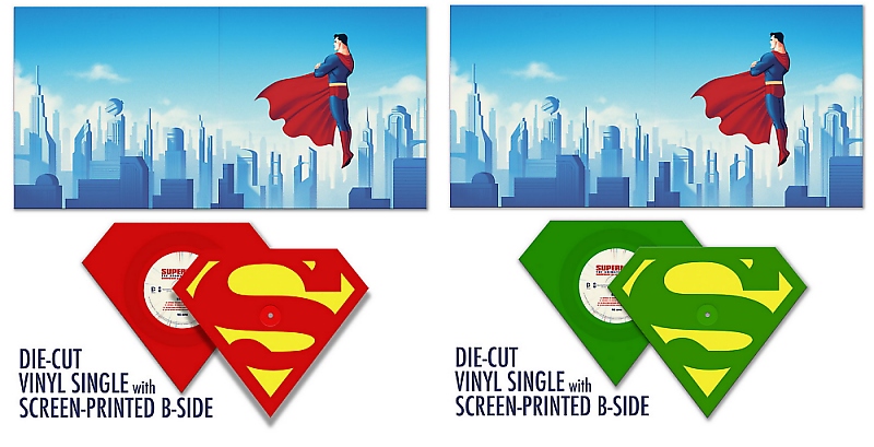 Mondo is thrilled to announce the Superman: The Animated Series Die-Cut single featuring the character's iconic emblem cut in the shape of the Man of Steel's "S" in classic red vinyl or Kryptonite green vinyl. Commenting on the artwork, Justin Erickson of Phantom City Creative said, "I wanted to make this a companion piece to my packaging design for Batman: The Animated Series. While Batman is darker and more serious, Superman needed to be bright, colorful and energetic to reflect the tonal differences between the two."