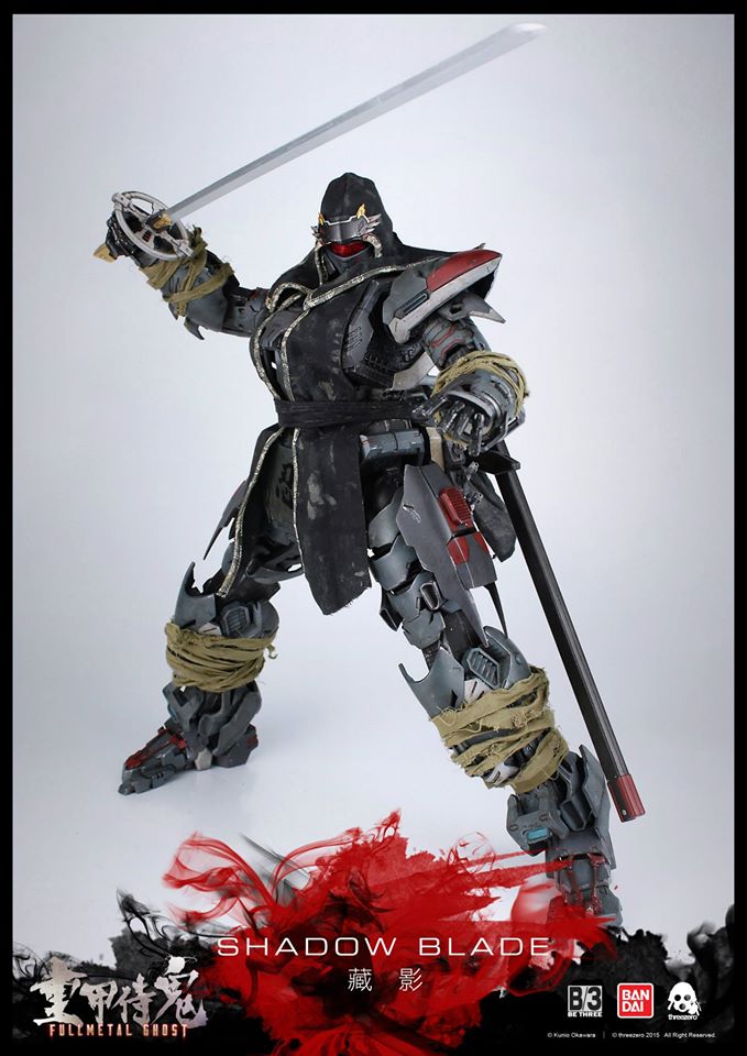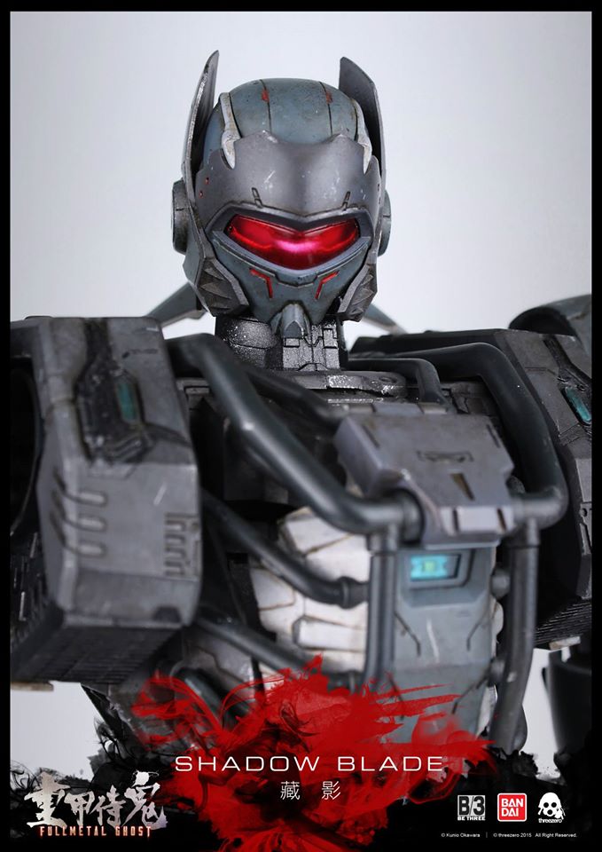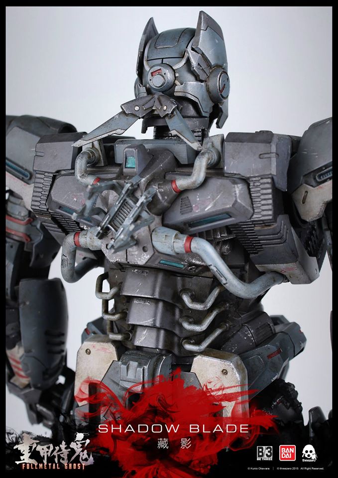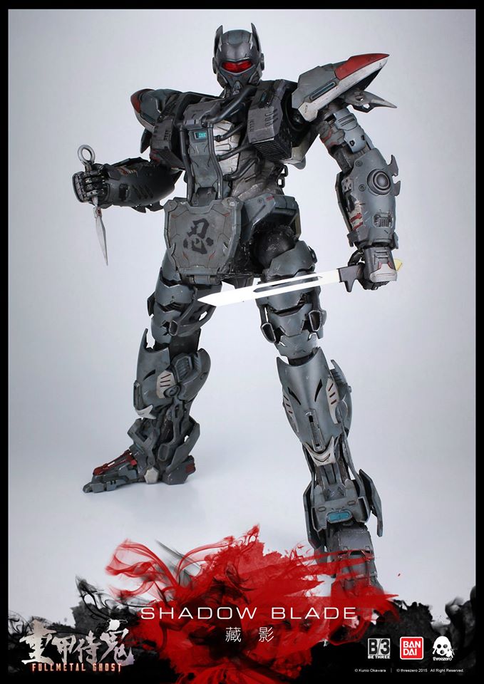 Bandai and ThreeZero (B/3) have teamed up once again to bring collectors their third collaboration: FullMetal Ghost Shadow Blade. The 16.5-inch tall figure is available for pre-order now at threezerostore.com priced at US$360/HKD2800 (with worldwide shipping included in the price).
